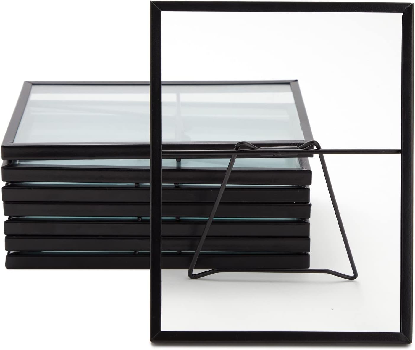 The Juvale 8-Pack Black Floating Glass Picture Frames offer an elegant solution for showcasing cherished photographs and artistic creations. Constructed with durable iron and glass, these frames feature a double-sided glass design, allowing for a clear view from both sides. Measuring 6.9 x 8.9 inches, they are perfectly sized for 5x7-inch photos, making them an ideal choice for refreshing your home decor with a sleek, modern look as the cooler months approach. These versatile glass picture frames are particularly suited for displaying pressed flowers, adding a touch of natural beauty to any room. Used by individuals who appreciate a mix of contemporary and classic design, these frames can elegantly present family portraits or artistic endeavors. Capable of being displayed both horizontally and vertically, they offer flexible use across various settings, whether on a dining table, dresser, or countertop. The timeless black finish of these floating frames complements any decor style, providing a sophisticated accent. They are suitable for special occasions such as weddings, where they can be used to display table numbers or place cards. Each frame includes an easel back for easy setup, ensuring they can be conveniently repositioned to meet different decor needs. This set includes eight black floating picture frames, allowing for ample opportunity to display a wide array of memories and artistic creations. They are used by adults and teens alike, making them a thoughtful gift for those looking to enhance their home with an elegant and stylish touch. Perfect for everyday use or special occasions, these frames are a versatile addition to any decor collection.