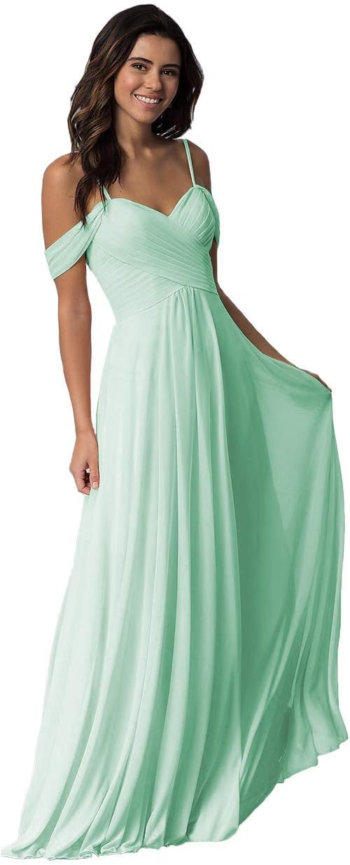• Features: This A-line chiffon dress boasts a charming sweetheart neckline, off-the-shoulder design with delicate spaghetti straps, a pleated bodice, and a figure-flattering princess waistline. The ensemble is completed with a full, soft skirt that adds a touch of elegance to the overall look. Prepare to receive numerous compliments while adorned in this exquisite attire. With a selection of over 40 hot colors and a range of US 0-28W sizes, finding your perfect fit is a breeze.