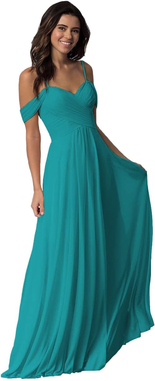Skycity Women's Long Off Shoulder A Line Chiffon Wedding Bridesmaid Dresses 2025 with Pockets Z001